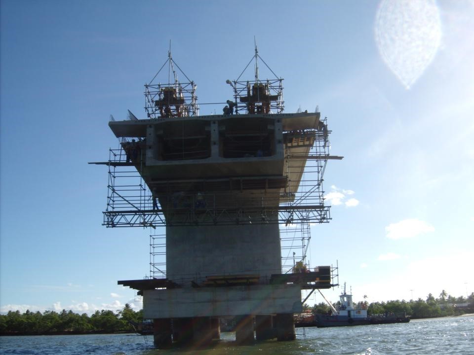 Fabricadas em um pátio no canteiro de obras, as aduelas era transportadas por meio de barcaças até o ponto de içamento. Inicialmente, a ROHR forneceu à obra as treliças do balanço sucessivo, composta pelos equipamentos treliça T30, tubos equipados, tirantes, vigas metálicas, fôrmas FA e fôrmas e perfis metálicos. Após a mudança feita no método executivo, foi possível reutilizar todo o material dos balanços sucessivos. Podemos afirmar que ao adotar o içamento das aduelas, nosso cliente mostrou-se muito satisfeito, uma vez que a obra ganhou grande velocidade e foi possível atender todos os prazos do cronograma previsto para a montagem da estrutura.