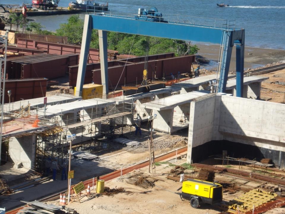 Fabricadas em um pátio no canteiro de obras, as aduelas era transportadas por meio de barcaças até o ponto de içamento. Inicialmente, a ROHR forneceu à obra as treliças do balanço sucessivo, composta pelos equipamentos treliça T30, tubos equipados, tirantes, vigas metálicas, fôrmas FA e fôrmas e perfis metálicos. Após a mudança feita no método executivo, foi possível reutilizar todo o material dos balanços sucessivos. Podemos afirmar que ao adotar o içamento das aduelas, nosso cliente mostrou-se muito satisfeito, uma vez que a obra ganhou grande velocidade e foi possível atender todos os prazos do cronograma previsto para a montagem da estrutura.